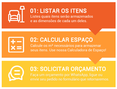 É muito fácil contratar um espaço da BoxGerais: faça uma lista dos itens que você precisa armazenar e defina quantos m³ correspondem a este itens. Se você não souber os tamanhos, use nossa calculadora, ou faça um orçamento pelo WhatsApp com a gente.